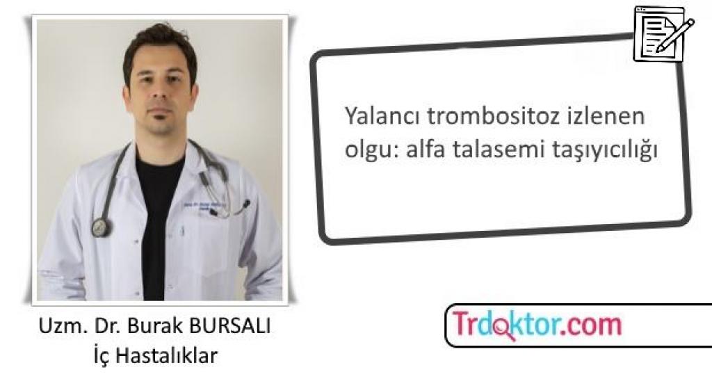 Trombositoz sıklıkla rastlantısal olarak karşımıza çıkan ancak ayırıcı tanısı önemli olan bir bulgudur. Reaktif trombositoz yapan nedenler veya altta yatan klonal kemik iliği ( miyeloproliferatif ) hastalıkları açısından değerlendirilmelidir. Periferik yayma altta yatan nedene yönelik yapılması gereken önemli bir testtir. Hemogramında trombositoz saptadığımız ancak periferik yaymasında trombositoz izlemediğimiz bu olgumuzda alfa talasemi taşıyıcılığının bir psödotrombositoz nedeni olabileceğini gördük.